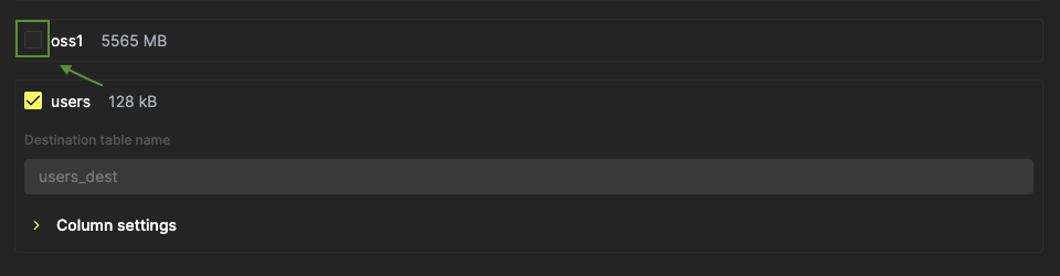 Добавление конкретных таблиц в ClickPipe